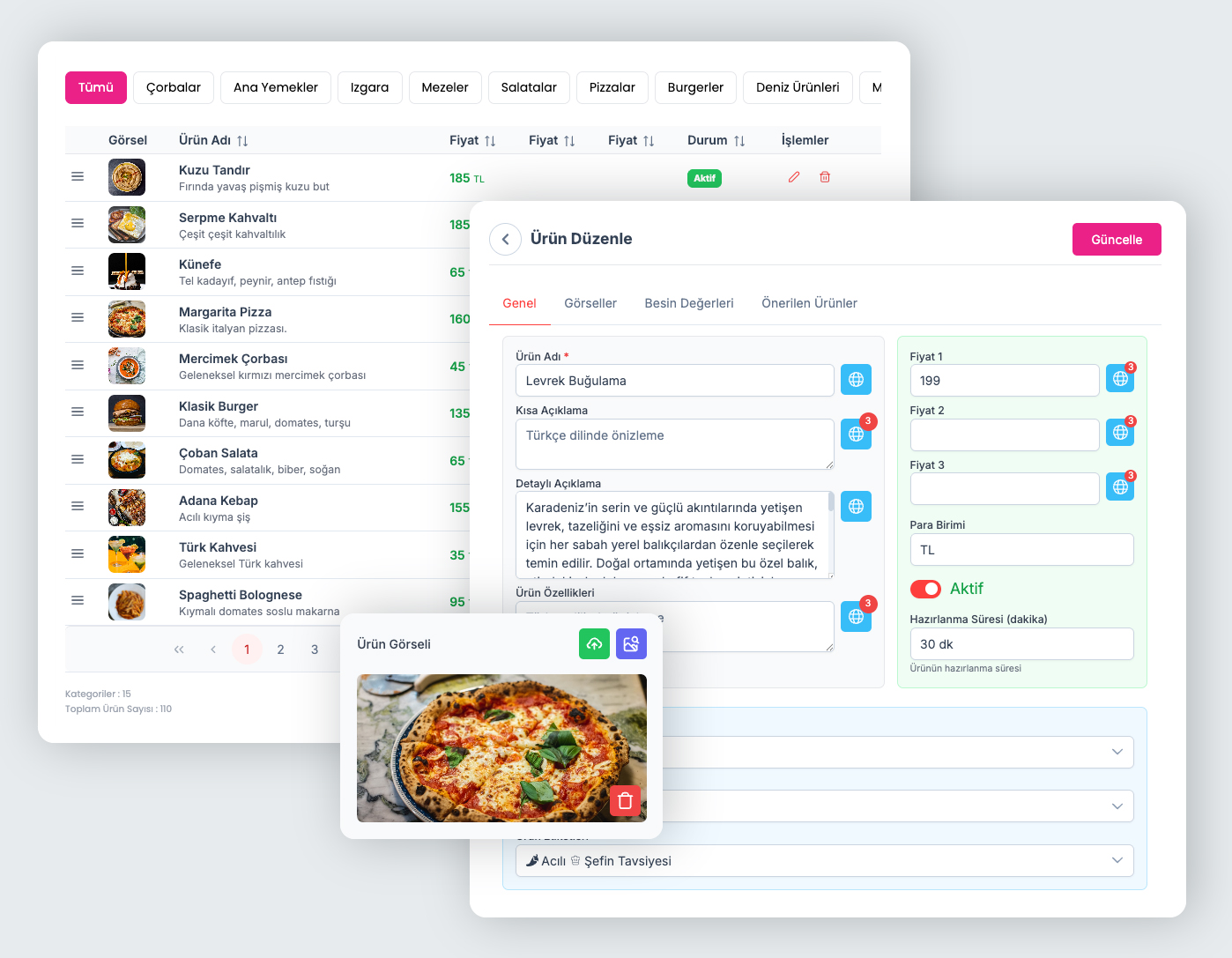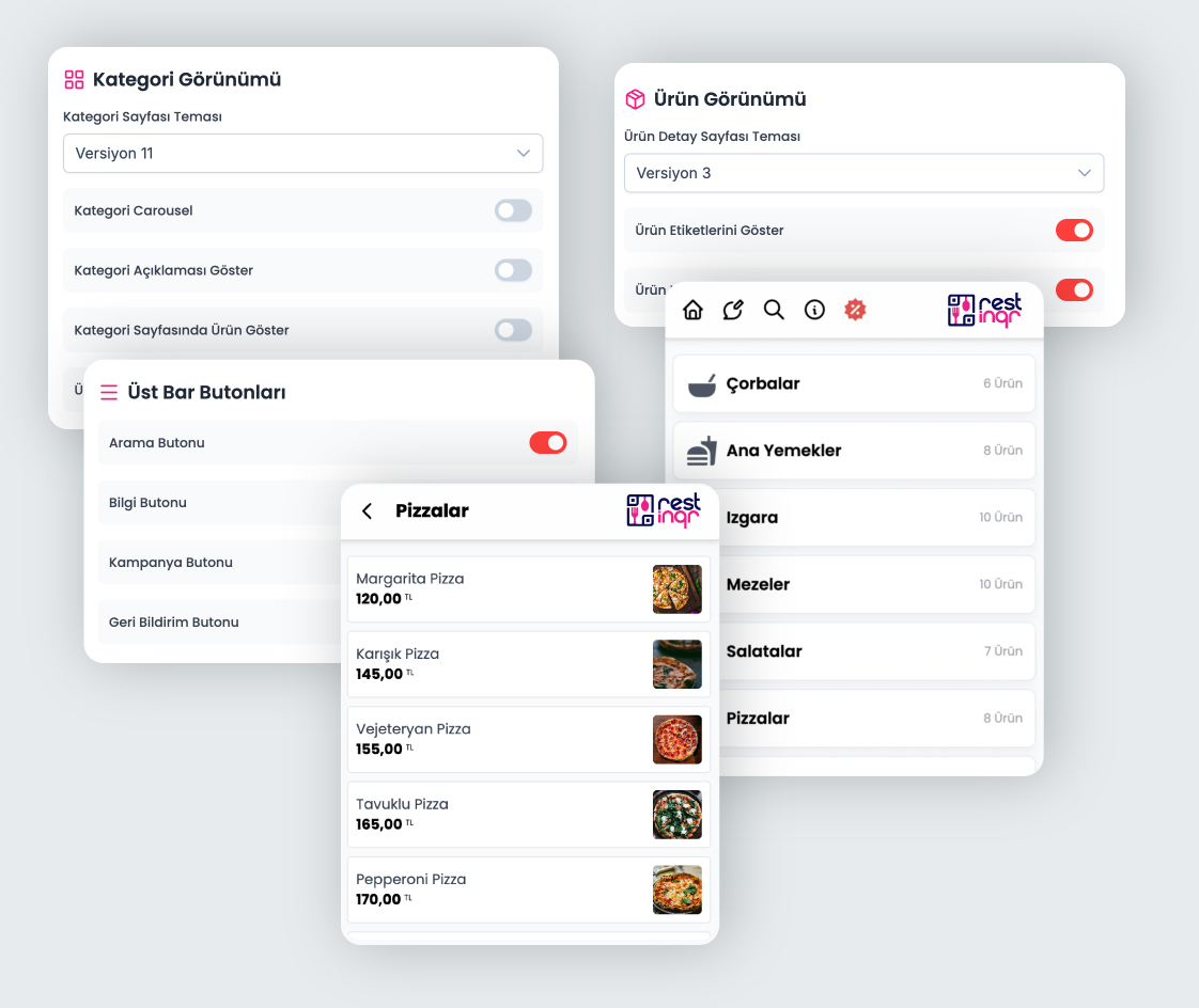 Sınırsız kategori ve ürün, etiket ve kampanyalar oluşturun. Standart QR menülerin tamamını unutun